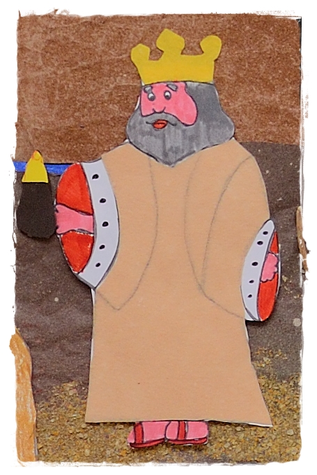 Il primo, quello che porta l'oro, veste di feltro ed ha una gemma dorata e lucida - così come il lingotto che porge a Gesù - ritagliato da carta da regalo dorata.