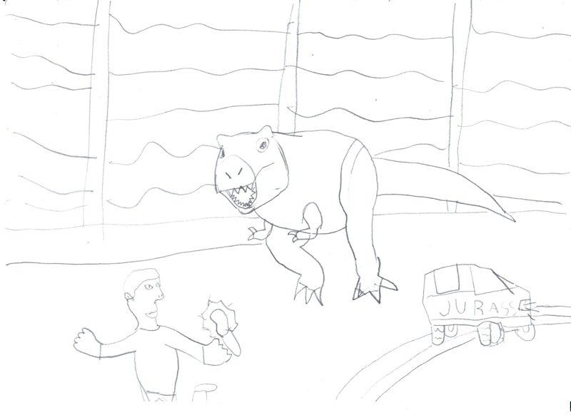 Ovviamente, da subito, la passione per i dinosauri protagonisti del film si è andata a fondere per la passione e la predisposizione per il disegno dii Giovanni che, da un paio di mesi a questa parte, disegna e dipinge dinosauri e scene del film in ogni momento della giornata.